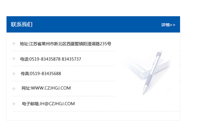 地址:常州市新北區友邦商務大廈1幢16、17層  電話:0519-85101652  傳真:0519-85112595  郵編:213022  網址:www.cz-jiayue_cn.ahsuhua.com  郵箱:xiajifengaa@163.com